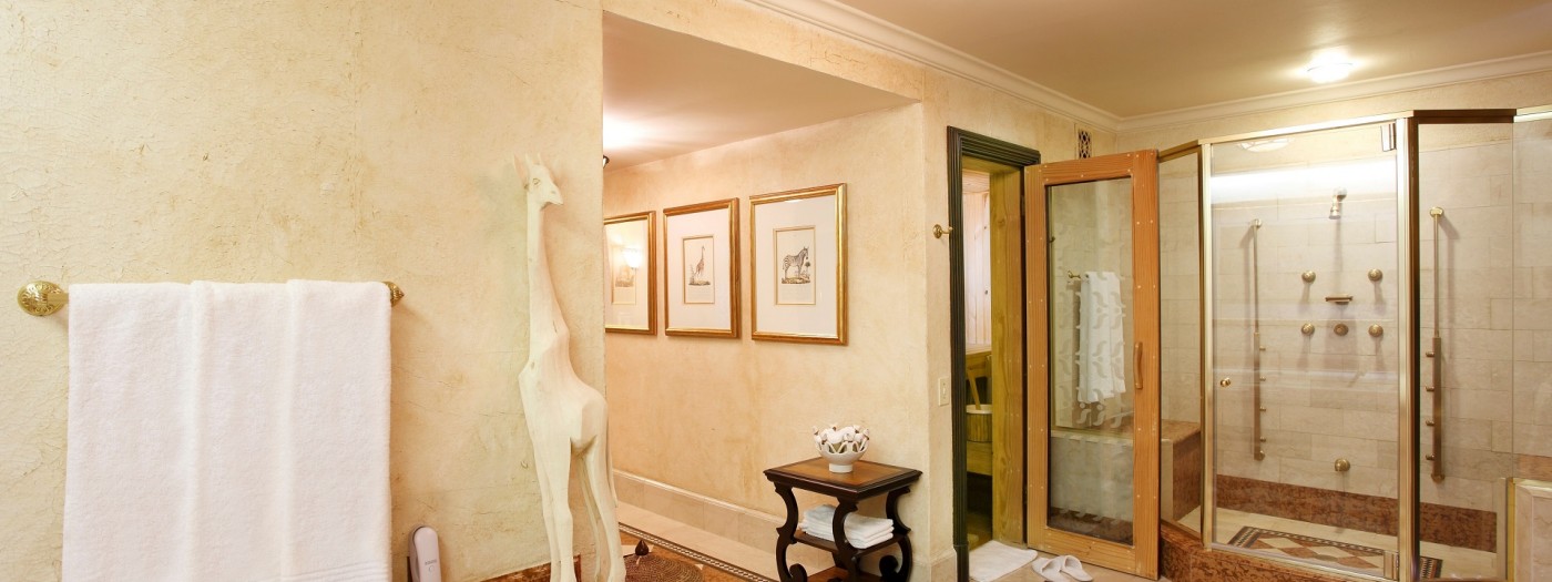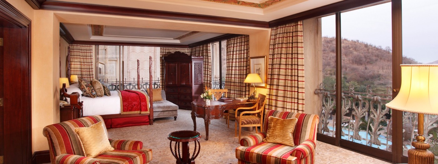Rivalling the opulent African Suite and the King’s Suite, the Royal Suite at The Palace of the Lost City comes with its own butler. The suite sleeps 2 people with a king-size bed. There is 1 en-suite bathroom with a separate bath and shower, as well as luxury amenities. The suite comes with a separate entrance foyer as well as a dining area. In the living room section there is a comfortable lounge with couches, standalone chairs and a coffee table. Enjoy air-conditioning, flat screen TVs with satellite channels, your own tea and coffee facilities, a stocked minibar and 24-hour room service.