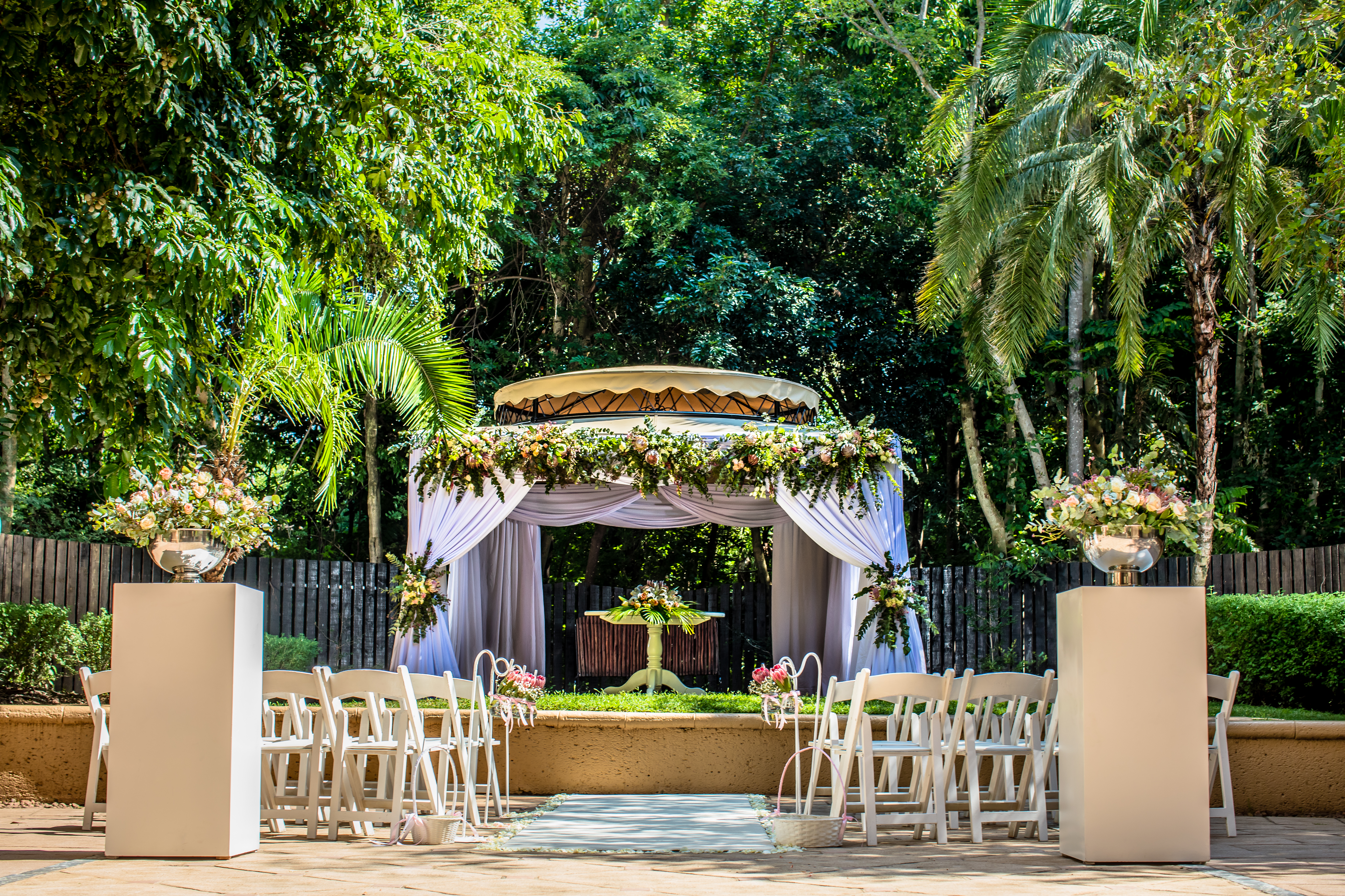 Set within the gardens of the Lost City, The Palace Gazebo is an intimate Sun City wedding venue ideal for hosting a banquet for 90 guests.